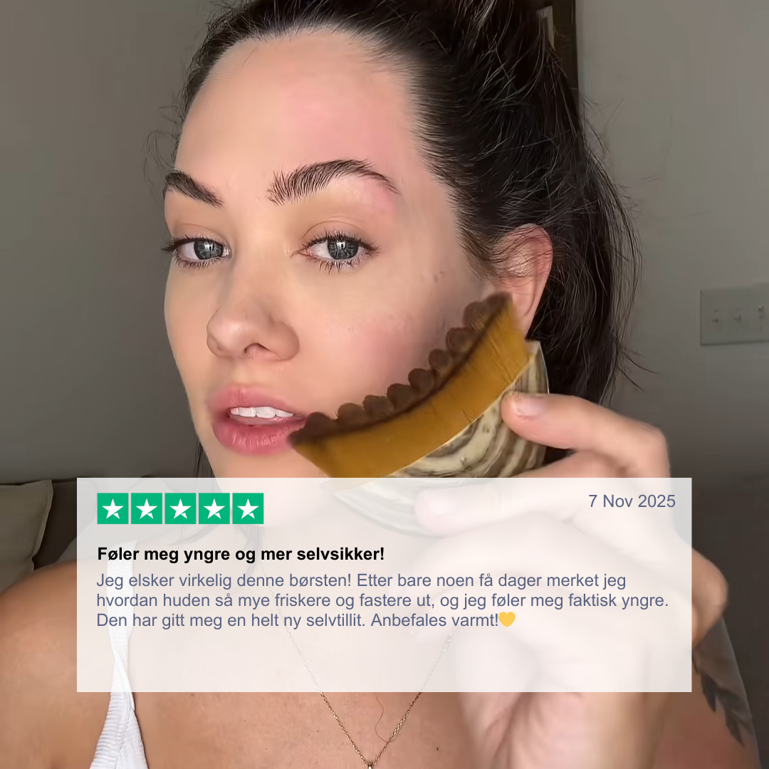 LymfeBørsten hjelper til med å redusere hevelse og fremheve naturlige linjer i ansiktet. Regelmessig bruk gir et fastere uttrykk og en mer markert kjeve og hake.